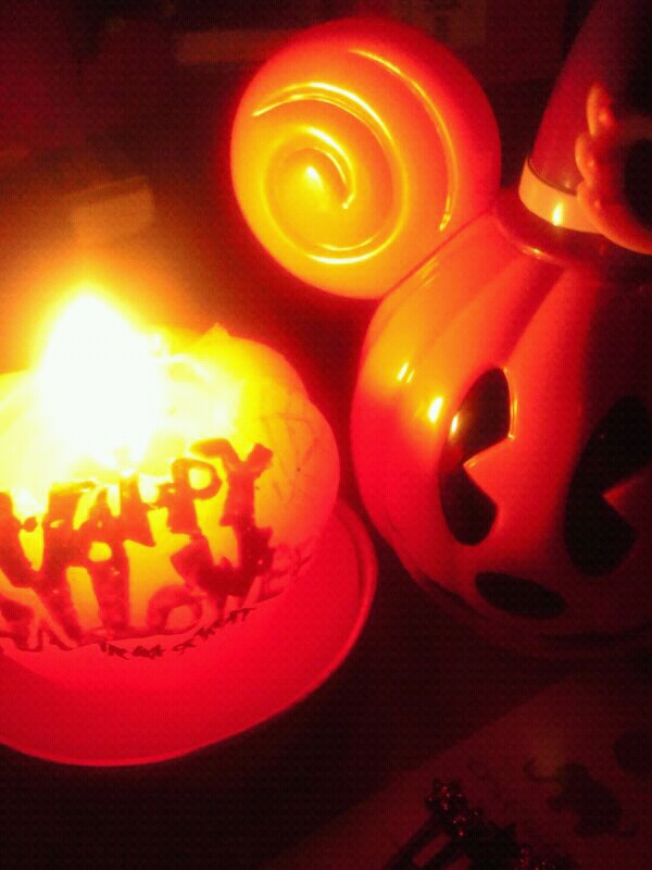 御主人様から戴いたかわいいお土産と前に買ったハロウィン仕様のキャンドルがいい雰囲気醸し出してたのでパパラッチ!